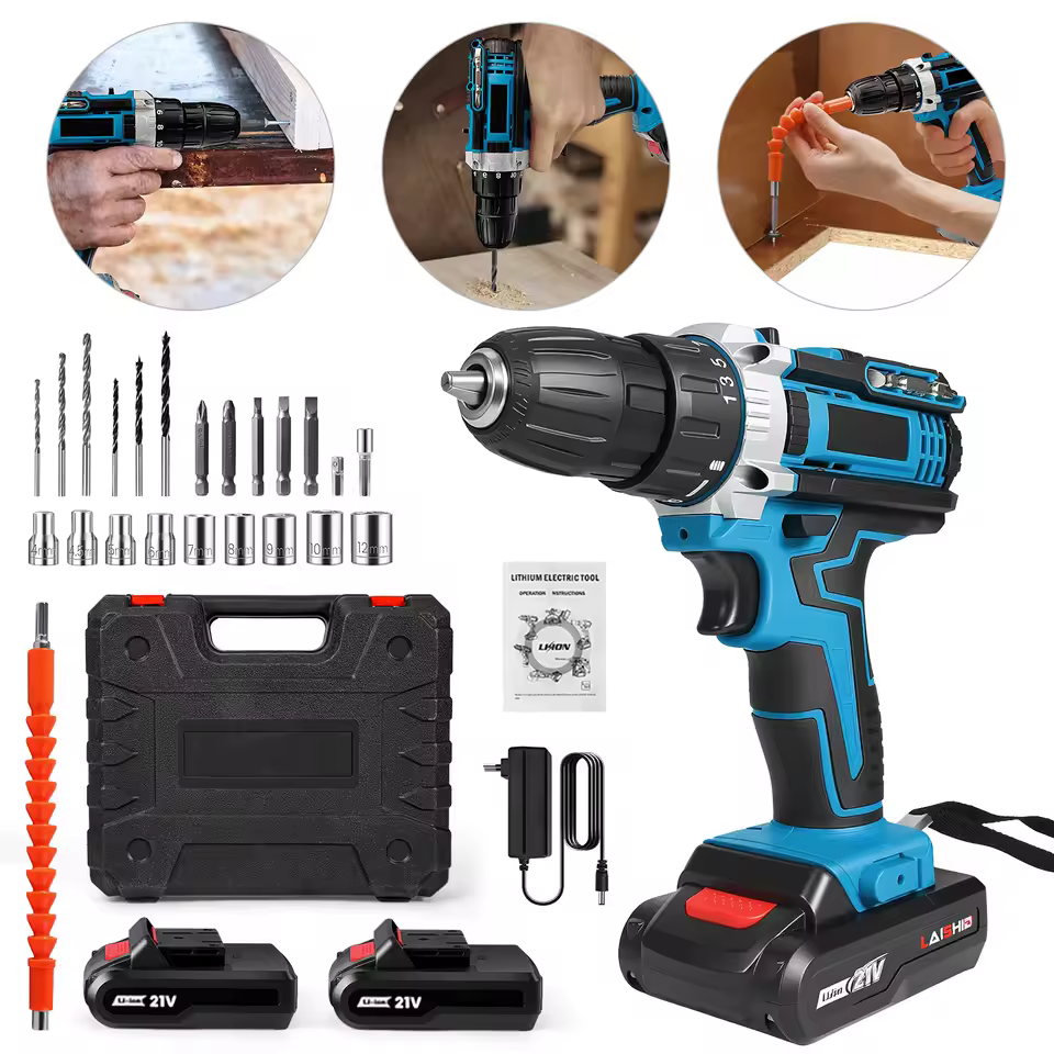 21V Electric Screwdriver Set 32pcs Cordless Drill Battery 1500mah Rechargeable Screwdriver Torque 25+3 Power Tools