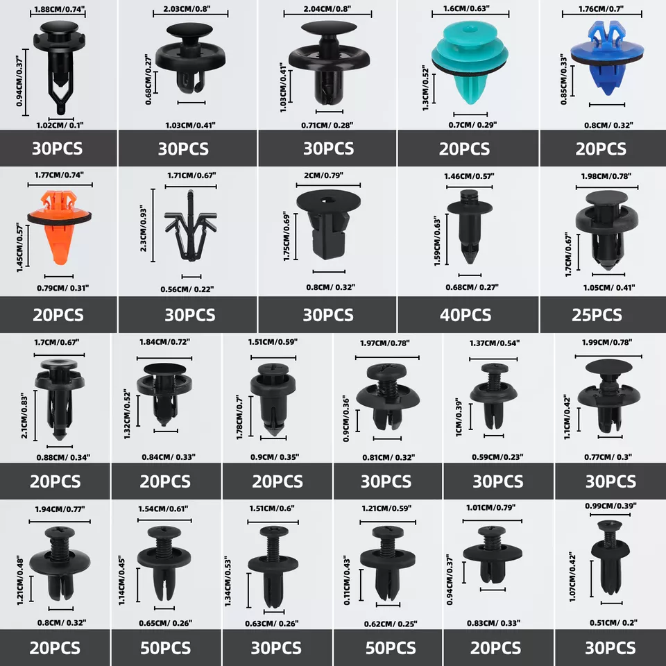 Strong & Durable: Crafted from high-quality plastic for long-lasting performance. Quick & Easy Fixes: Remove clips without damage, even in tight spaces. Universal Fit: Includes 6/18 styles for all your repair needs. Cost-Effective: Up to 415 pieces, perfect for DIY enthusiasts!